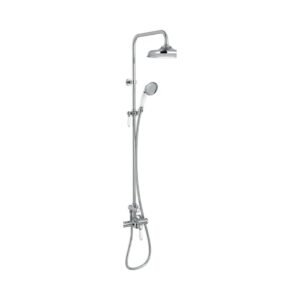 Montage sans silicone. Bandeau miroir. Poignée et porte-serviette en Inoc. Douche de tête réglable en hauteur.